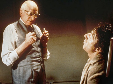 Movie a Day Blog hadn’t seen MARATHON MAN since its original release 25 years ago, and the movie holds up well. It’s the only outright thriller John Schlesinger directed in an eclectic and currently undervalued career. This is the filmmaker behind DARLING (1965) and A MIDNIGHT COWBOY (1969), among other distinguished films, and he brings a sensitivity to character that other directors of his generation often overlooked. This is one of Laurence Olivier’s most remembered Hollywood roles – no one who originally saw the film can forget his probing dental work on Dustin Hoffman, not in one but two scenes that were reportedly trimmed back after preview audience members became physically ill in the theater. MARATHON MAN is a crackerjack of a film, beginning with propulsive driving chase sequence with a fiery ending, and never letting up on the adrenaline rush for the lengthy two-hour-plus running time. Schlesinger is stylistically very much a late 1960s filmmaker: there are discordant shots, editing and music that accompany Roy Scheider’s entrance, for example. Schlesinger and screenwriter William Goldman, working from Goldman’s best-seller, are not afraid to confound audience expectations by having Hoffman’s brother (come again?) and Nazi hunter Scheider die unexpectedly and early in the film, thus jarring the audience in the same way the cinematography (by the great Conrad Hall) and the editing do. Poor Dustin Hoffman is still stuck playing a college student (at least he’s a grad student this time around) nine years after THE GRADUATE (Mike Nichols, 1967), and on some level he seems slightly miscast in this role. Al Pacino was also considered, and might have displayed his paranoia in a more raw New York form, rather than Hoffman’s Jewish neuroticism. Schlesinger doesn’t turn away from the plot’s realistic bloodletting, which is frequent and prodigious as the hunt for Olivier gets underway in earnest. Playing a variation on the German medical experimenter Dr. Josef Mengele, Olivier is shaved-head evil incarnate, although with a touch of culture (we meet him listening to German lieder in a rainy South American hideout). He’s a spectral figure, and his constant refrain, “Is it safe?” ended high up on the American Film Institute list of most famous movie sayings. The least successful part of the film is the love affair between Hoffman and Marthe Keller, who was cast only after Julie Christie turned down the role. Schlesinger proves to be a master of suspenseful pacing, especially in a scene when Hoffman discovers someone after him in his apartment, methodically prying apart the door that shields him. And the very conscious delay between the two dental torture scenes (and that’s exactly what they are, make no mistake) works effectively to maximize suspense, especially when the electric drill makes an appearance and all of our teeth suddenly start hurting. The scene is almost all played off of Olivier’s benign face and the bright dental light. Hoffman, who trained exhaustively to be believable as a marathon runner, then has to live up to the film’s title and run for his life. Paralleling the opening outstanding chase scene, an even more dramatic one concludes the film. The finale, an imaginatively staged confrontation between Hoffman and Olivier, ends in an unexpected way with a great pay-off on a weapon introduced in an earlier dramatic killing. MARATHON MAN doesn’t end up making any great points about the nature of evil, other than it endures and shows up in unexpected places. Even in the dentist’s office.